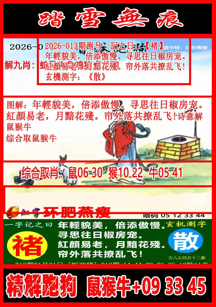 013期:【一锤定音】━━━【解析跑狗玄机】━━━个人心水分析!