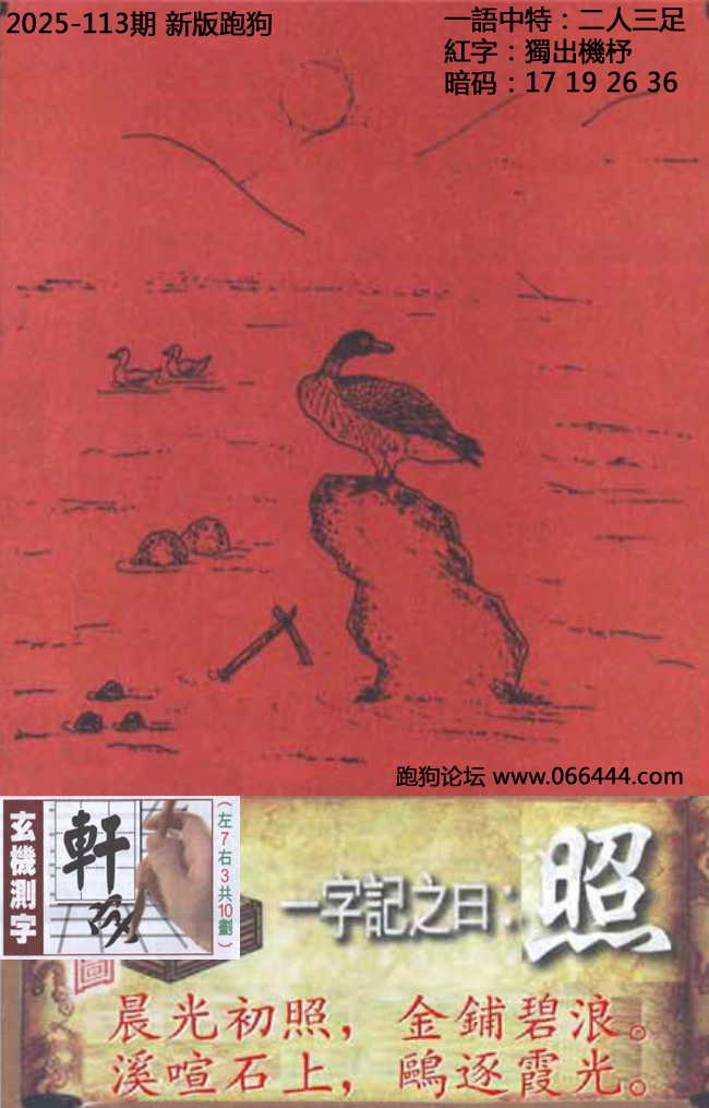 113期六合皇信箱红字【獨出機杼】《暗码:17 19 26 36》开